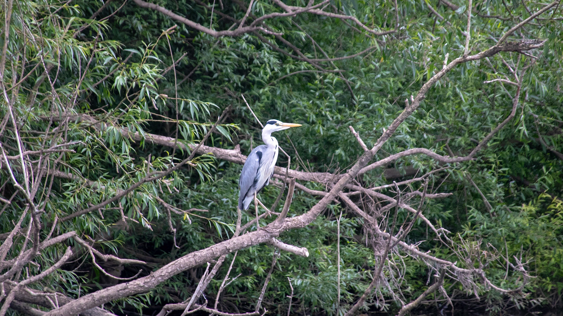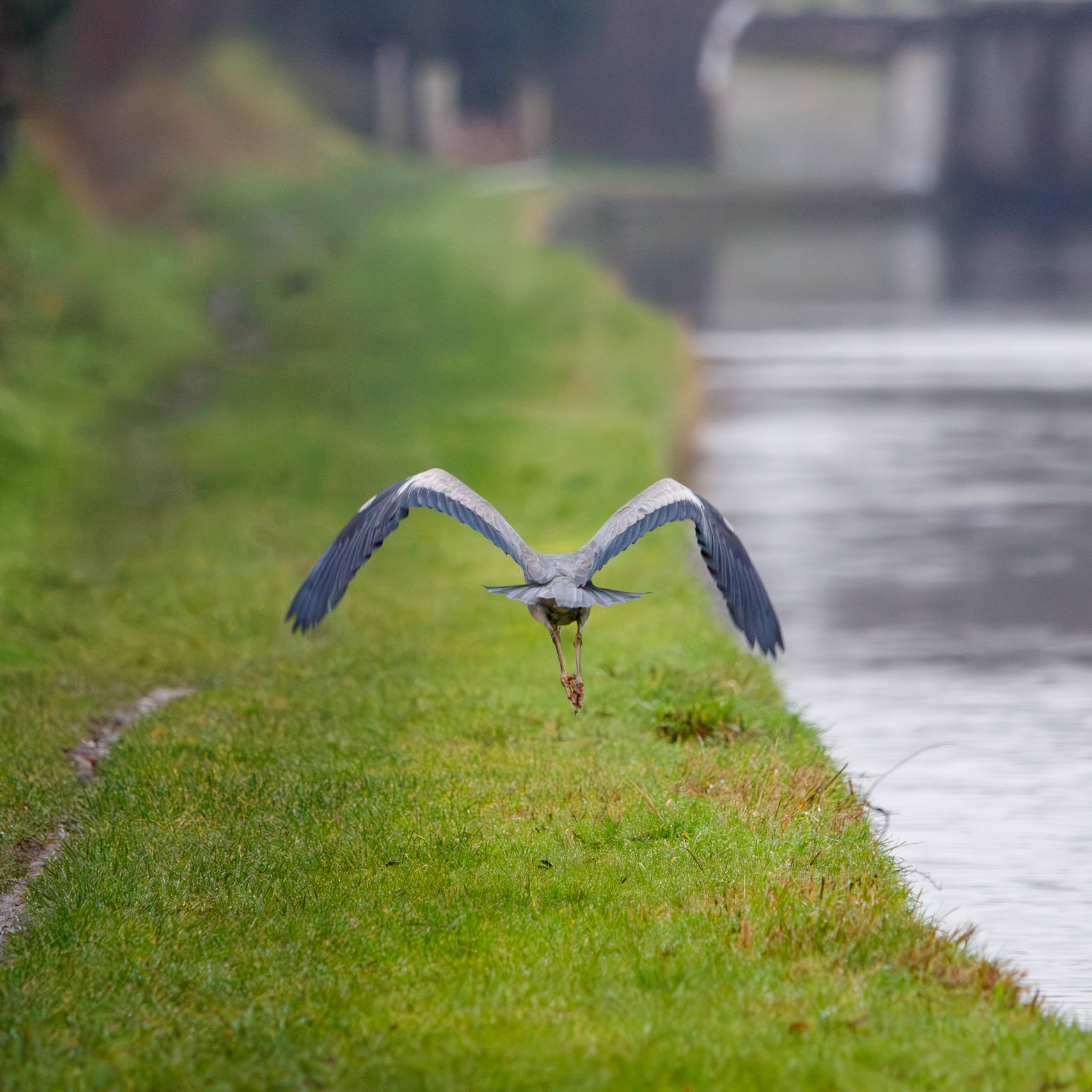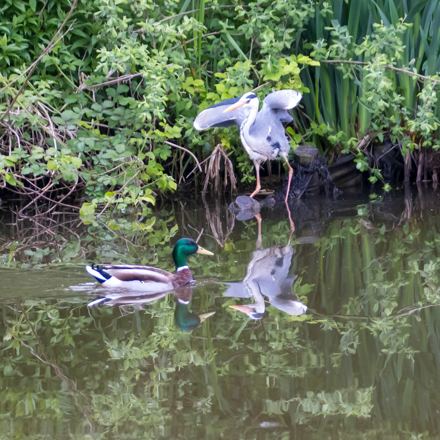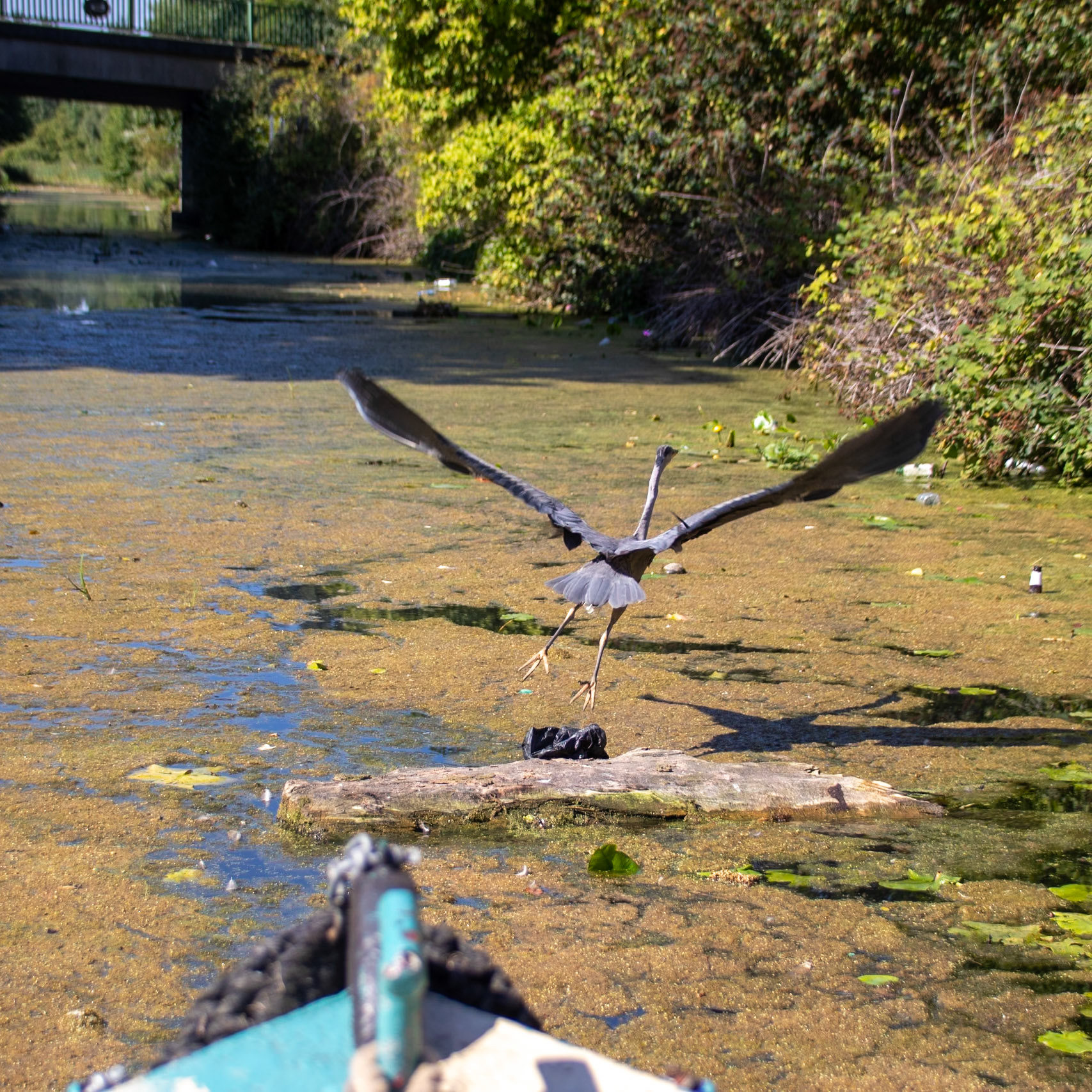 Heron with its catch on the Dudley canals
