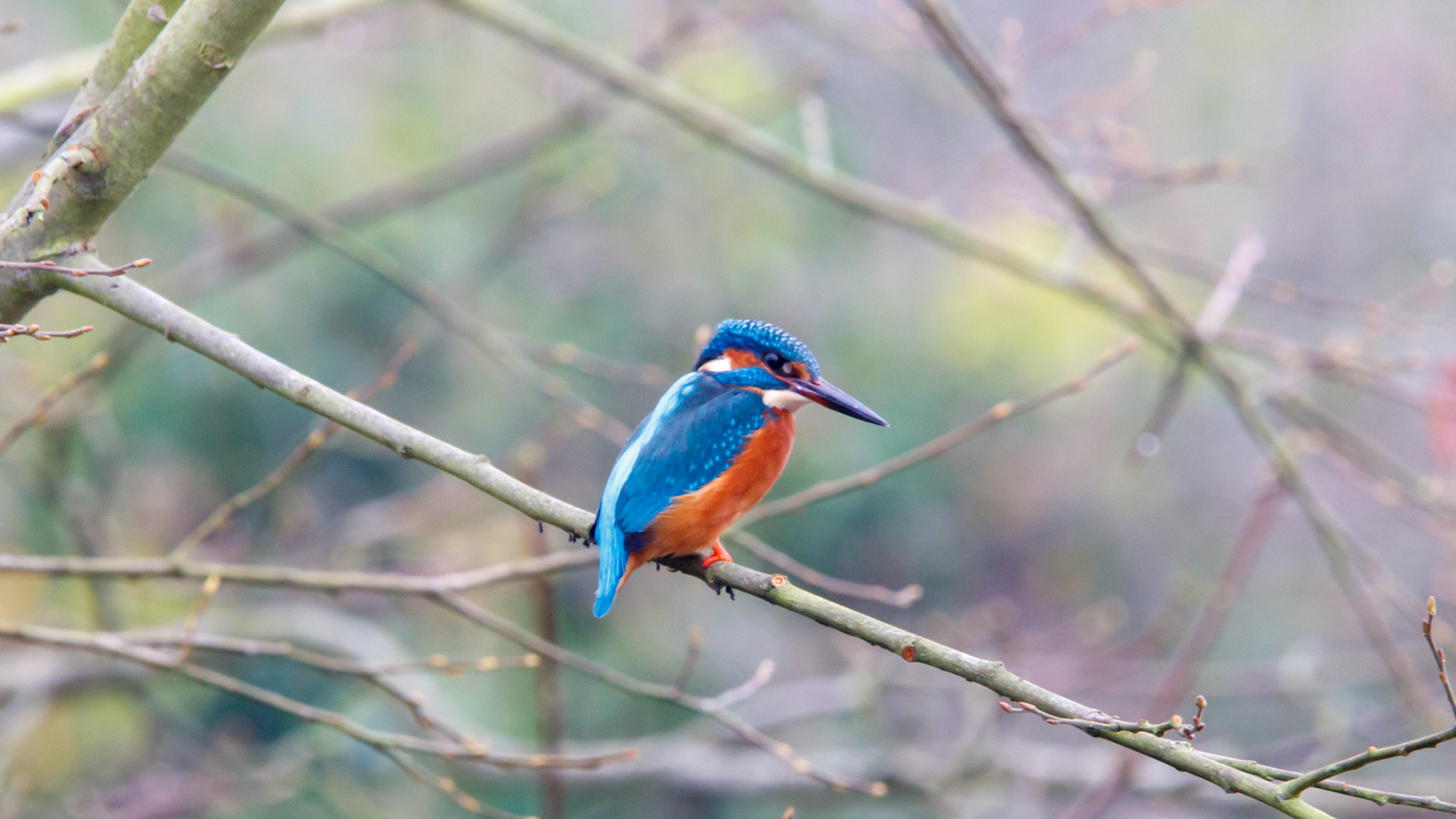 NB Will Try moored up on the Stratford-upon-Avon canal with snowfall on the towpath